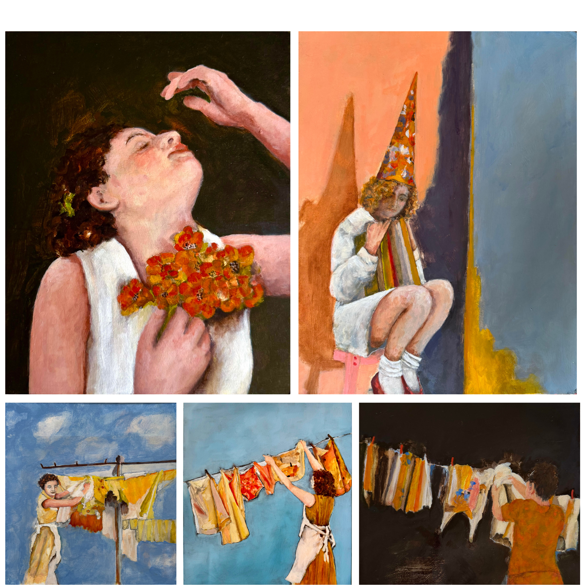 Coffee Girl with Blue Flowers, 4" x 6" 2022
